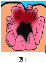 环状混合痔(图2)是指痔同时发病于齿状线上下且围绕肛管直肠一周,多伴有脱出、便血等症状,严重时因痔核嵌顿无法回纳而水肿、坏死,疼痛难忍。环状混合痔的手术治疗一直是肛肠科相关手术的一大难点,且传统手术时间长,创伤大,皮桥难以保留,恢复时间长,患者术后恢复过程中疼痛、水肿、出血、大便困难等问题难以避免。