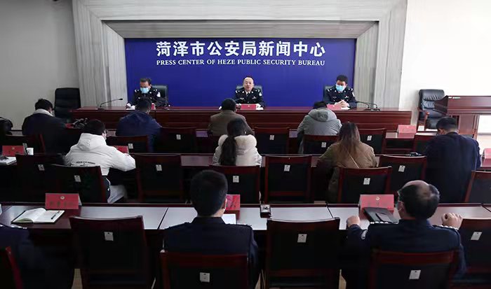 11月10日上午,菏泽市公安局召开年度工作汇报新闻发布会。市公安局党委副书记、政委庞少杰主持发布会并致发布辞,市局党委委员、刑警支队支队长王磊,市局领导、一级高级警长刘述勤就严打整治、社会治安、为民办实事等相关问题回答记者提问。