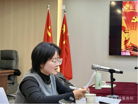 会议的核心环节聚焦于《律师执业行为规范》的深入学习。田恬律师结合执业经验,从职业道德、业务操作、风险防控三大维度,系统解读了执业规范的核心要求。她通过典型案例剖析,重点强调了“忠诚、为民、诚信、正义”的职业底线,提醒全体律师在案件办理中需严守合规红线,妥善处理利益冲突、证据保管等关键环节,以专业素养维护律师职业形象。