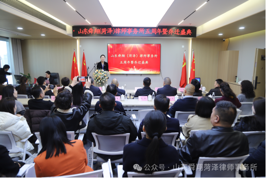 2025年12月14日上午,山东舜翔(菏泽)律师事务所在牡丹之都隆重举行五周年庆典暨乔迁新址仪式。本次活动以“五载耕耘筑基石,乔迁新址启宏图”为主题,邀请了菏泽市律师行业党委、律协领导、合作企业代表、社会各界嘉宾齐聚一堂,共同见证这一重要时刻。