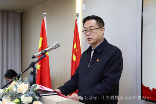 菏泽市律师行业党委副书记、菏泽市律师协会会长陈会领对舜翔菏泽律所的发展给予高度肯定:“舜翔菏泽律所在短短五年内,实现了从‘初创’到‘标杆’的跨越,其专业化团队建设与公益普法实践为行业树立了榜样。希望未来继续发挥引领作用,为菏泽法治建设添砖加瓦。”