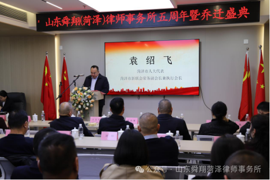 在致辞环节,多位嘉宾先后发表讲话,为舜翔菏泽所的五周年庆典与乔迁新址送上祝福。