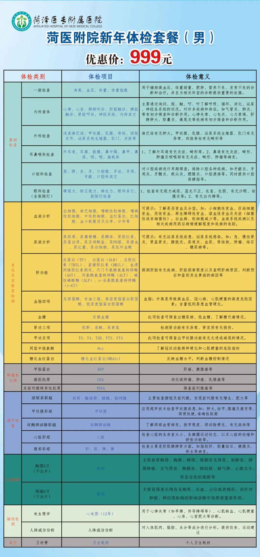 岁末将至,新年的倒计时交织而来!在这个充满温情与希望的节日季,菏泽医专附属医院健康体检科为您和家人精心筹备“新年健康礼遇”,推出节假日专属体检套餐优惠方案,用一次专业体检,为2025画上安心句点,为2026开启健康序章!
