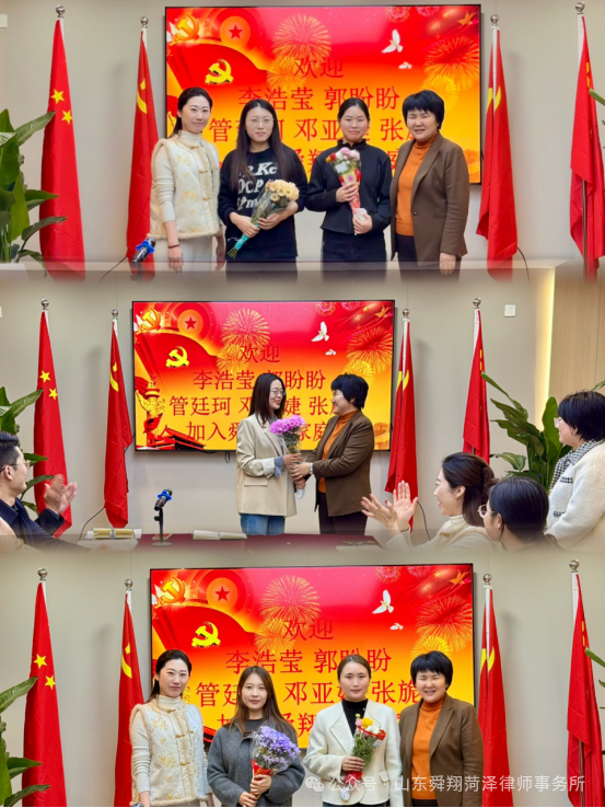 会议由青年律师发展委员会主任田恬律师主持,韩光玲主任首先致欢迎词,对新成员的到来表示诚挚祝贺与热烈欢迎,寄语大家在舜翔律所平台深耕专业、成长成才,然后韩光玲主任、陈晨执行主任依次为五位新伙伴献上象征欢迎的鲜花,并寄予殷切期望,鼓励大家快速融入团队、积极工作勇担使命。