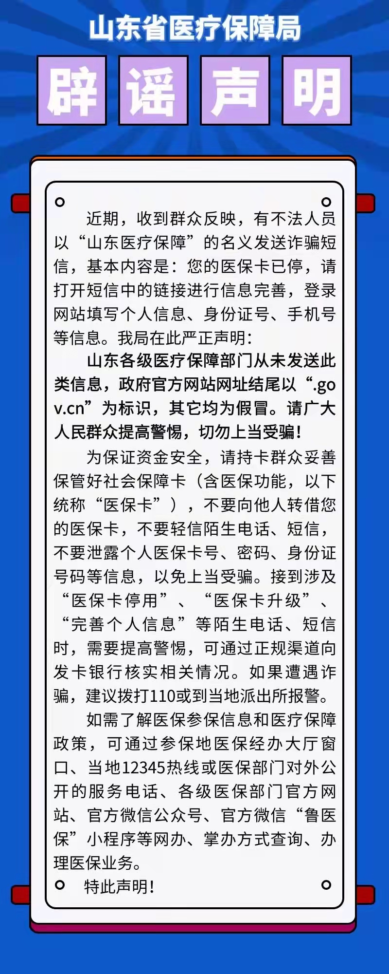 山东省医疗保障局辟谣声明