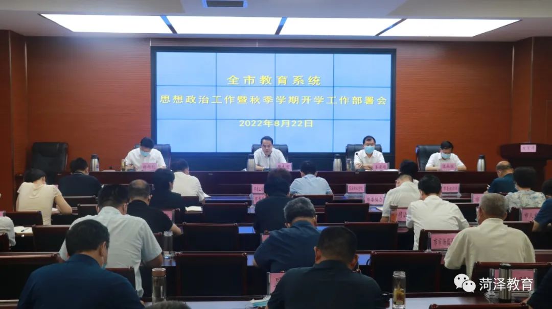 8月22日,全市教育系统思想政治工作暨秋季学期开学工作部署视频会议召开。市委常委、宣传部部长、市委教育工作领导小组组长周生宏出席会议,菏泽市副市长姜凌刚主持会议。各县区设分会场组织收听收看。