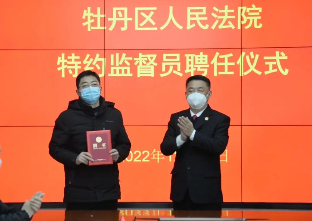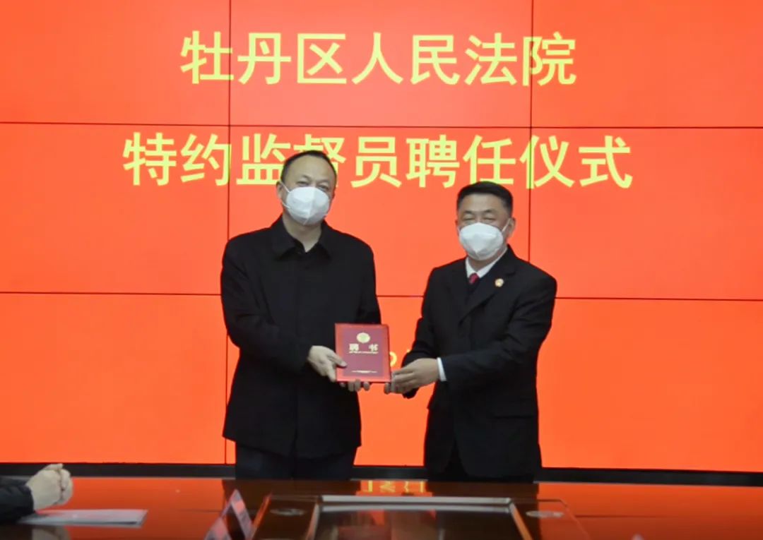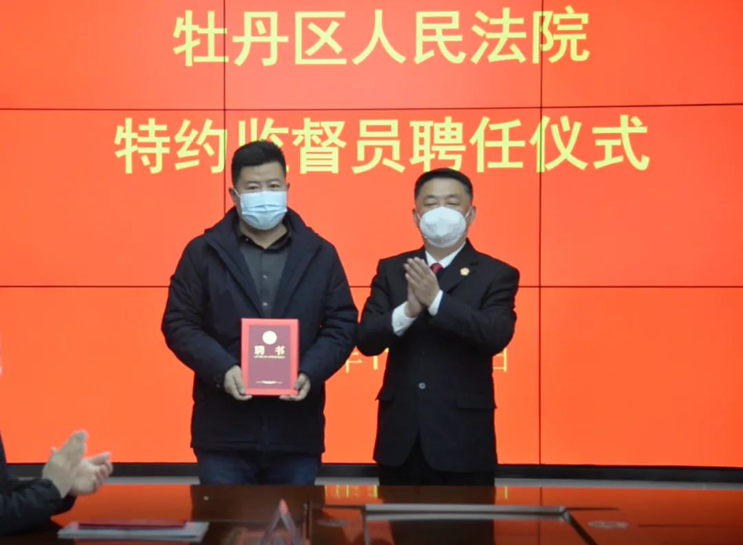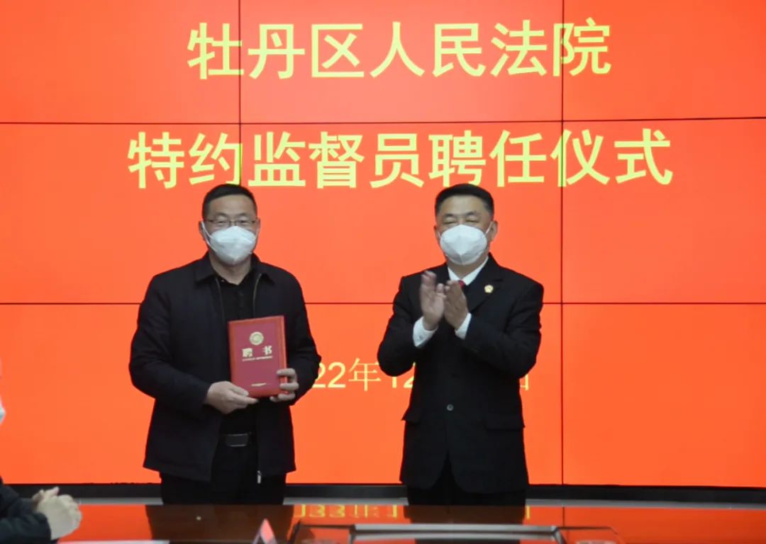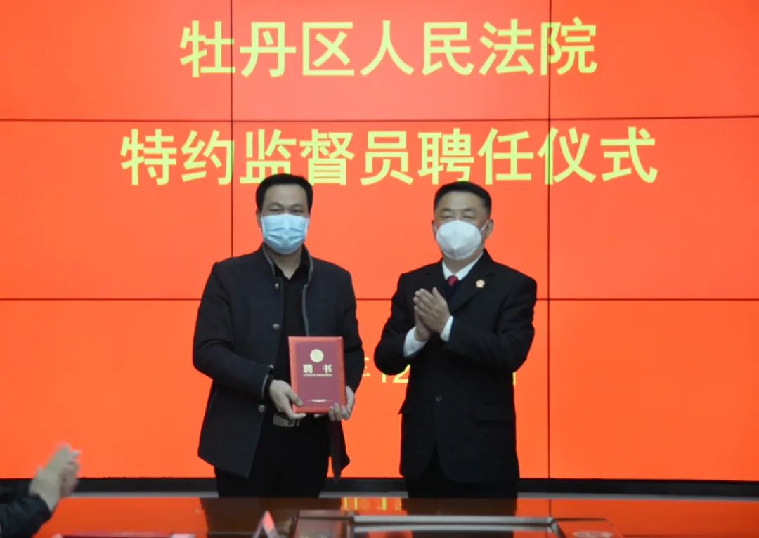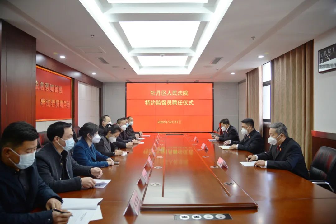 为进一步拓宽监督渠道,凝聚各方监督合力,促进司法为民、公正司法,12月17日上午,牡丹区法院举行特约监督员聘任仪式,聘任10名新一届特约监督员。仪式由党组副书记、副院长陈卫国主持,党组书记、院长王卫出席仪式并讲话,政治部党支部书记、督查室主任杨志军参加。