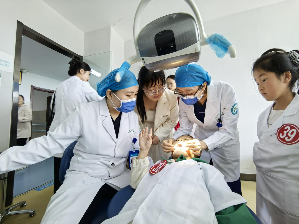 随后,孩子们分成小组,分别来到口腔科和眼科门诊,接受专业的健康检查。在口腔科,医生们为每一位孩子进行了全面细致的免费牙齿检查,耐心查看龋齿、牙齿排列及口腔卫生情况,并针对发现的问题给予个性化的护牙建议。